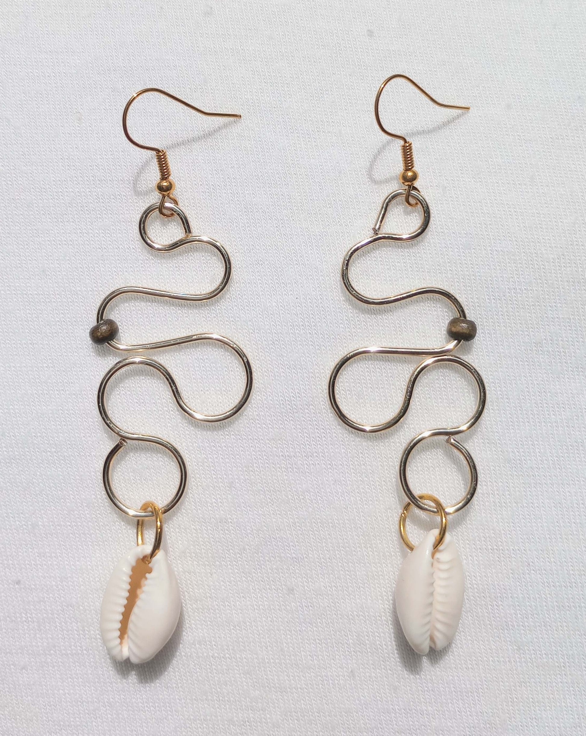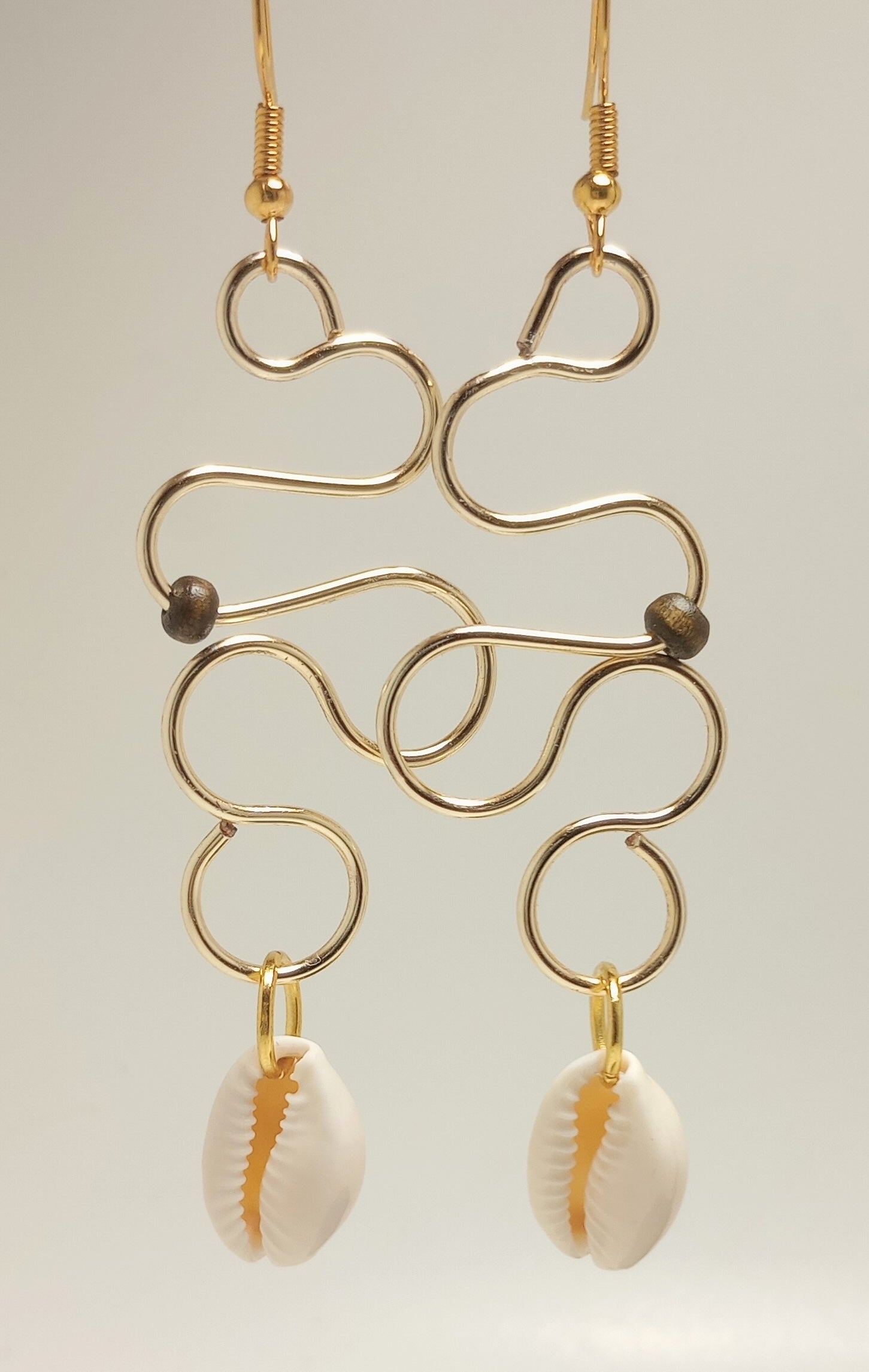 Ocean Waves - Dangle - Gold Cowrie Shell